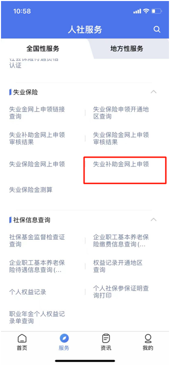 - 下滑至“失業保險”欄目——選擇“失業補助金網上申領”