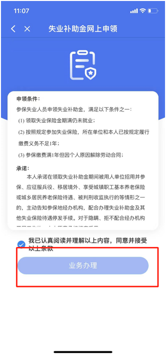 - 閱讀好條款后點擊“業務辦理”。